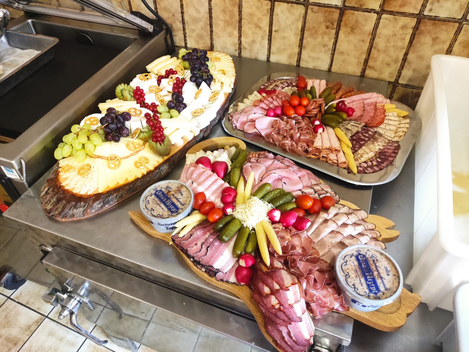 - Heißer Leberkäs (gerne auch Pepperonileberkäs oder Kalbskäs) mit hausgemachtem Kartoffelsalat