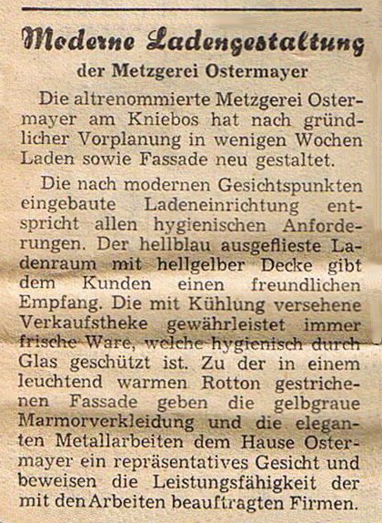 Beide erlernten das Metzgerhandwerk im elterlichen Betrieb, Sebastian Johann Nepumuk Ostermayer, der Großvater der beiden verstirbt am 2.10.1955 im Alter von 70 Jahren. Helene Ostermayer seine Gattin verstirbt am 25.041977. Maria Ostermayer verstirbt mit 63 Jahren am 09.05.1961.